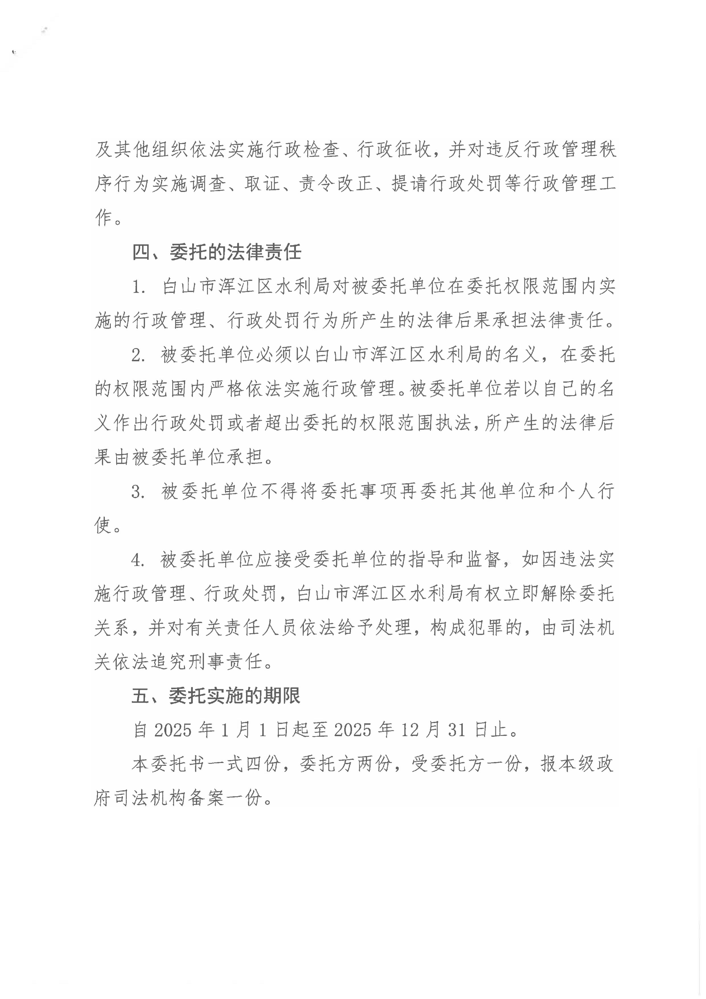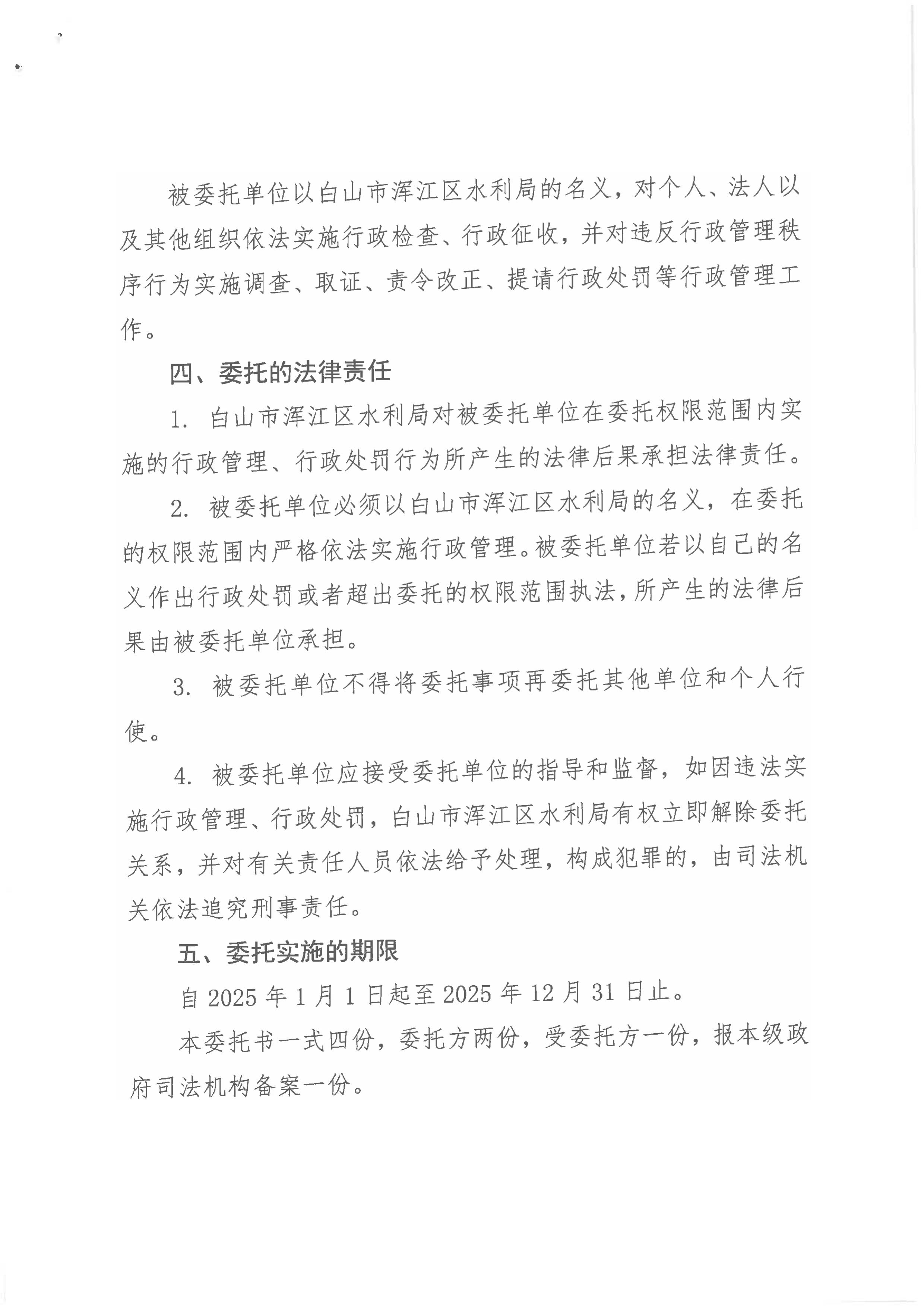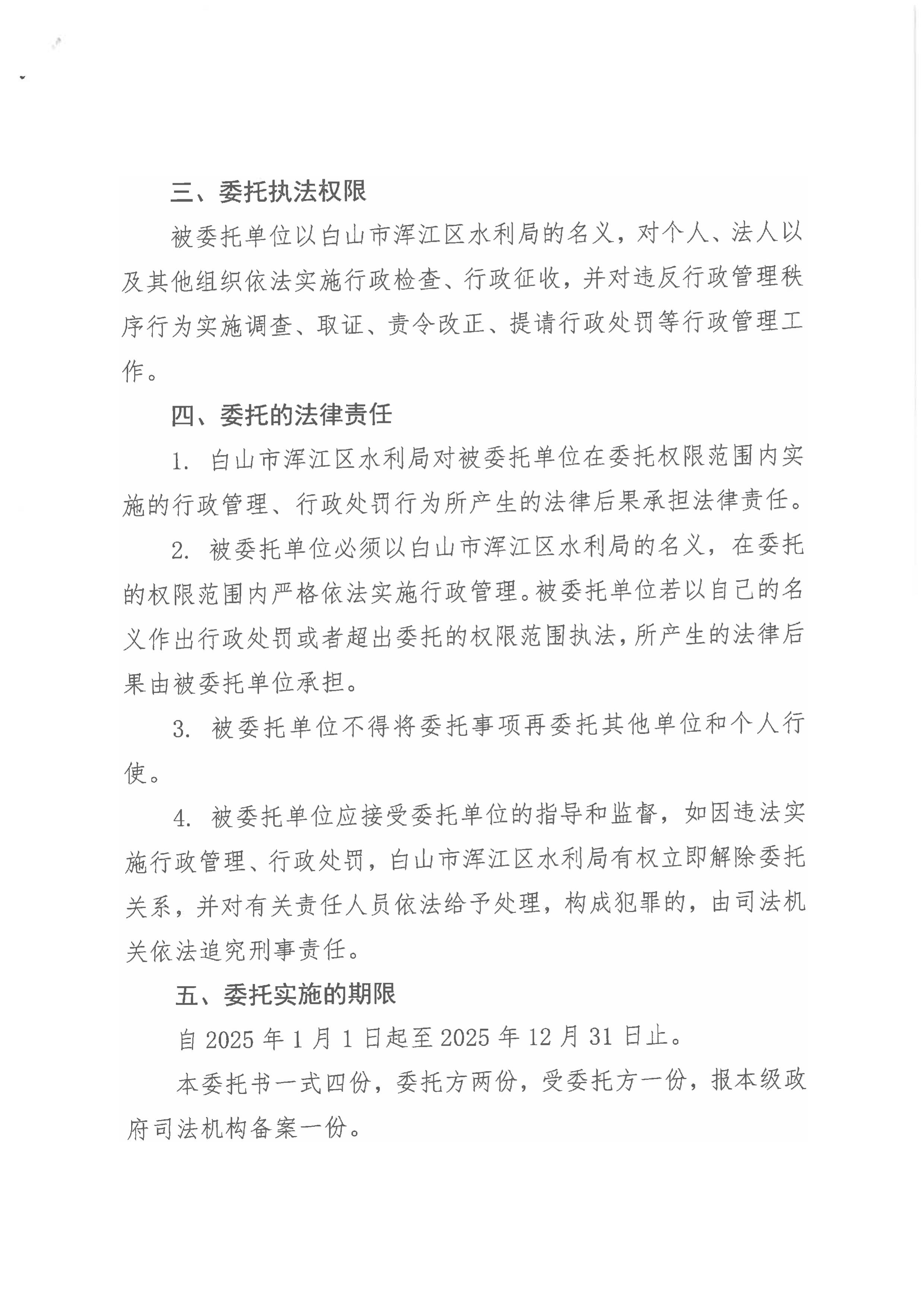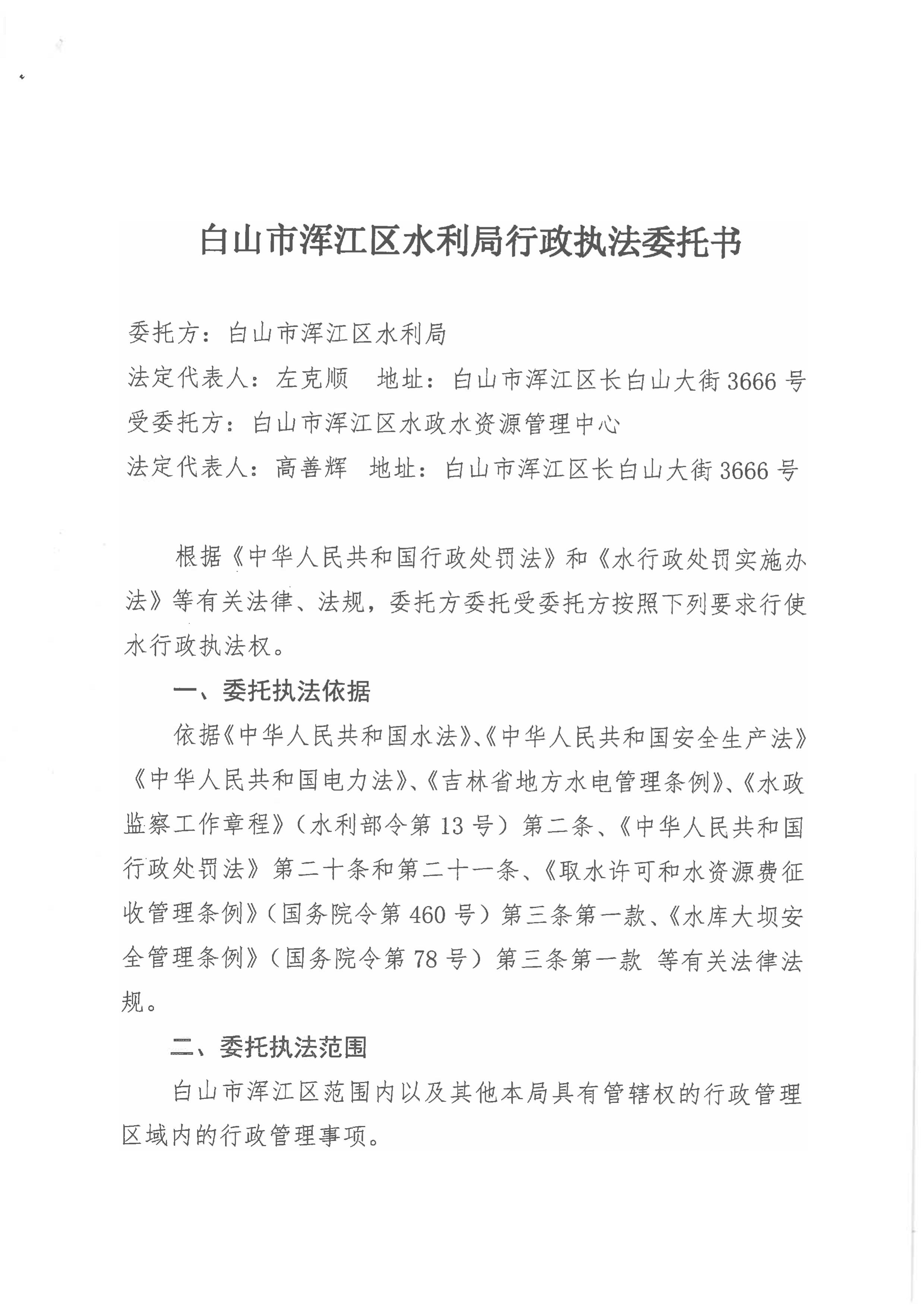 | 白山市浑江区水利局行政执法委托书(2026年) |