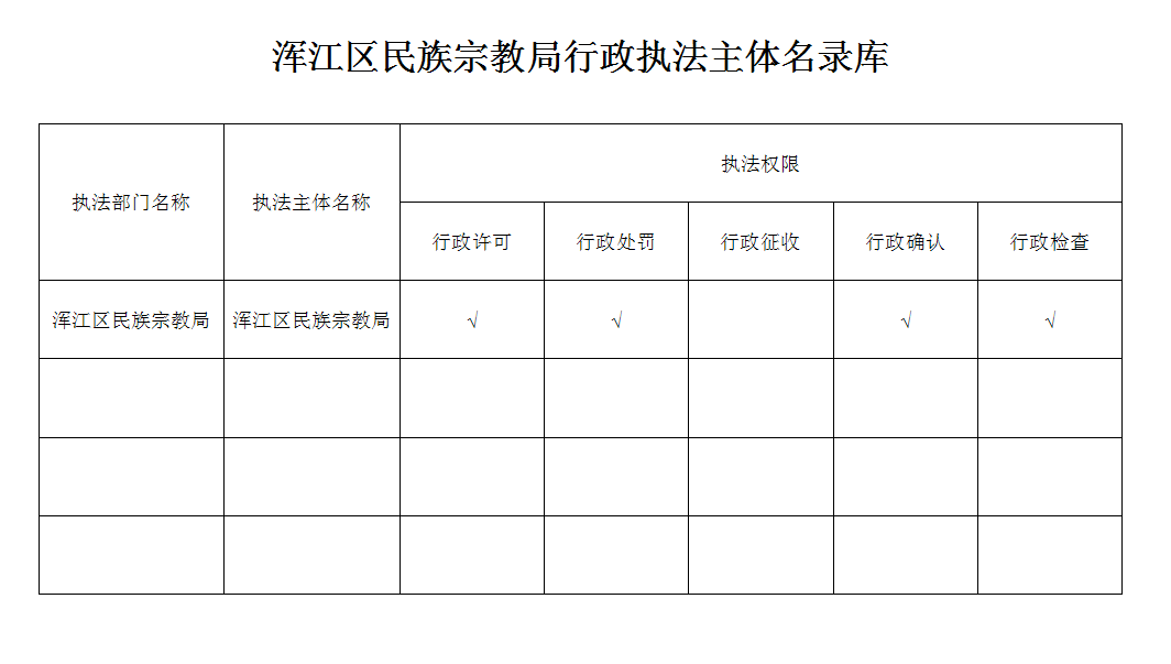 浑江区民族宗教局行政执法主体名录库