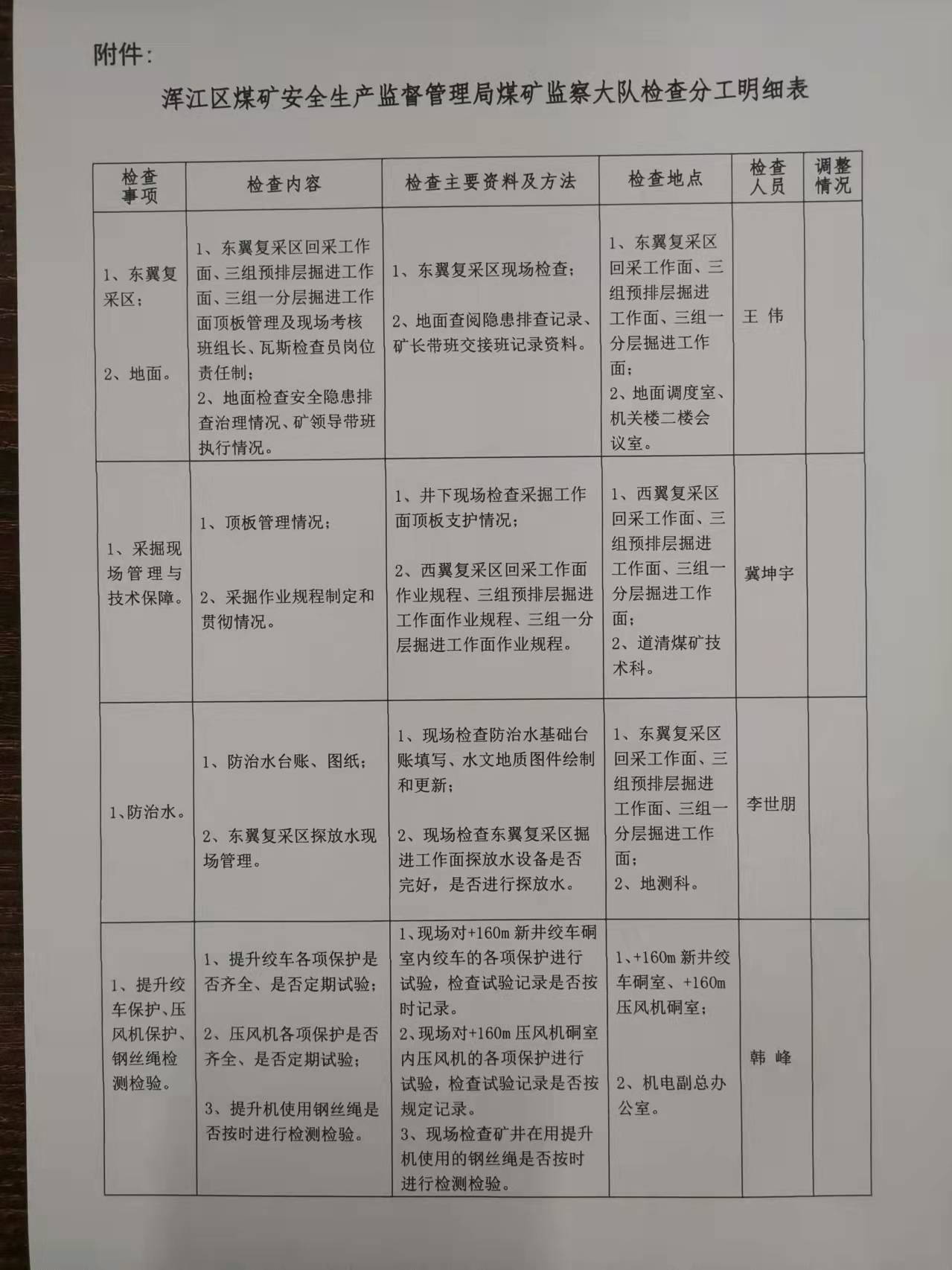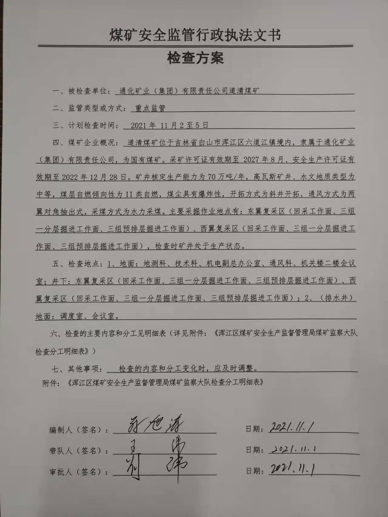 2021年11月道清煤矿计划监管执法检查方案