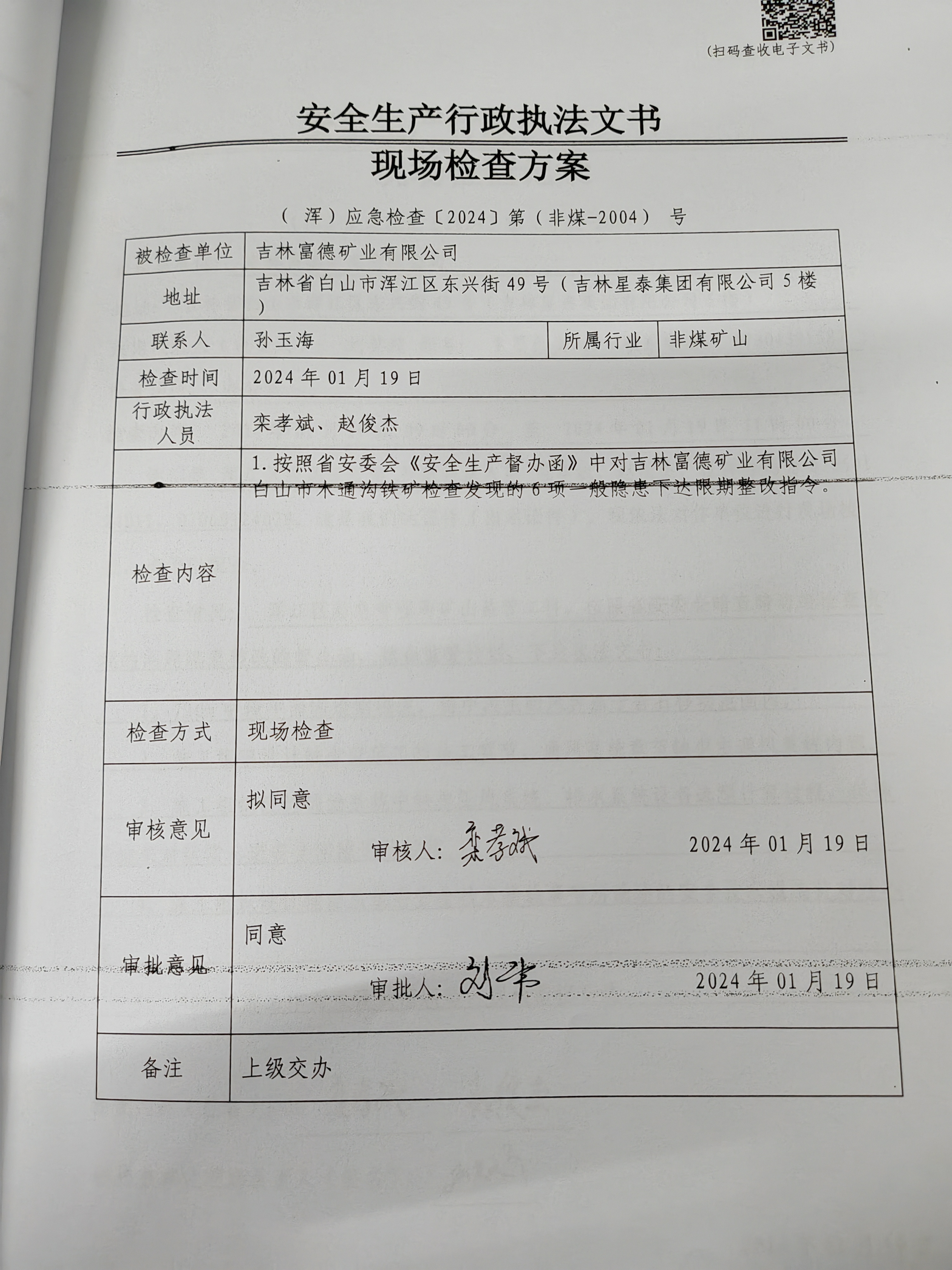 2024.1.19吉林富德矿业有限公司检查方案