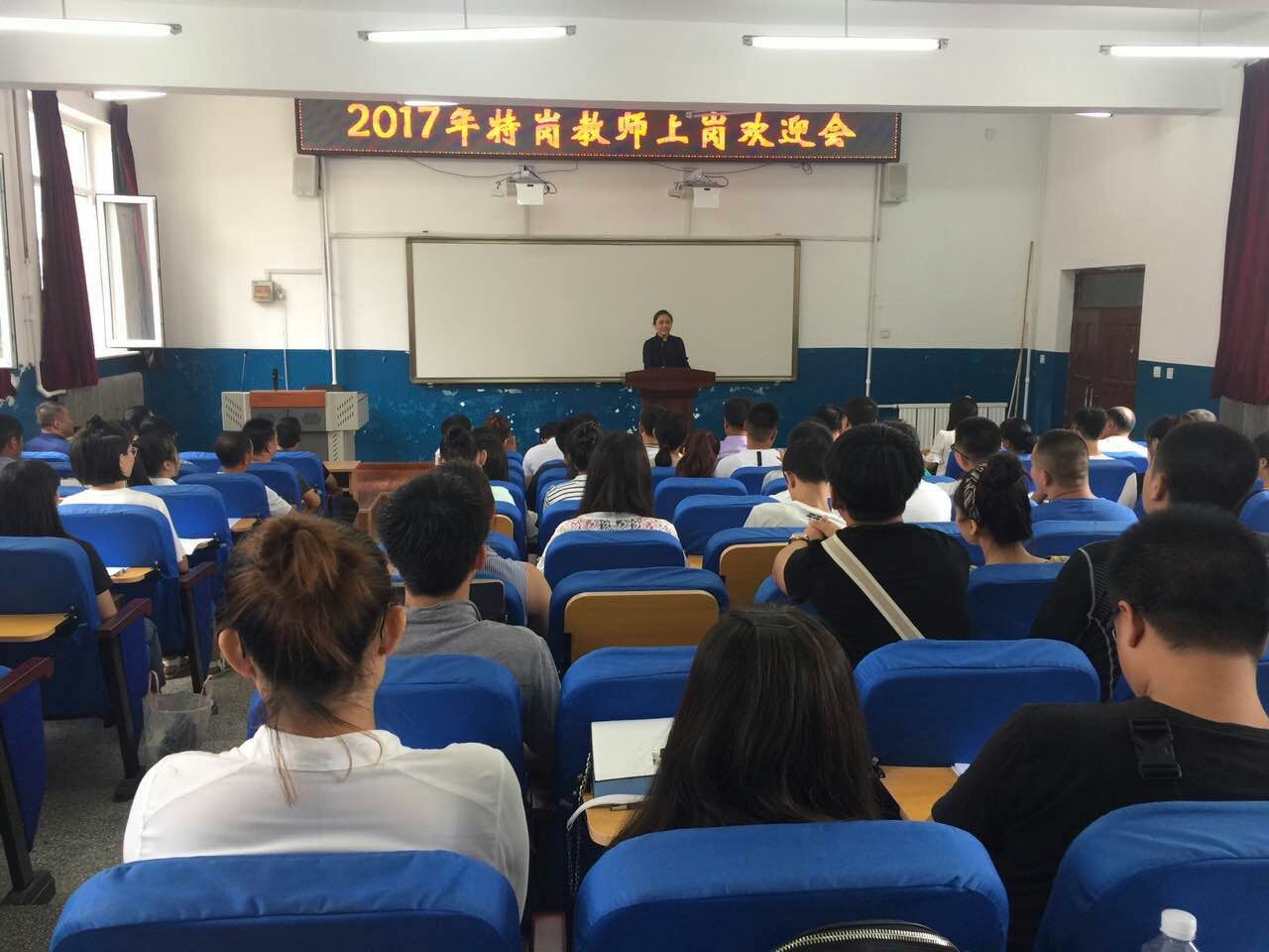 2017年8月23日,区教体局在区进修学校举办了2017年特岗教师上岗欢迎会,会上和锡华副局长代表教体局对新一批的特岗教师进行了岗前培训,对他们表示祝贺,并欢迎他们加入到教师队伍中来,同时也提出了希望和要求。