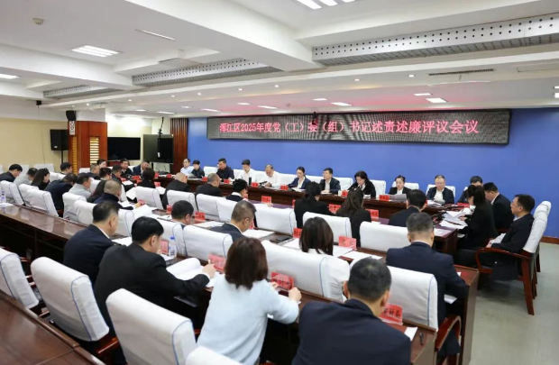 1月26日,2025年度全区党(工)委(党组)书记述责述廉评议会议召开。区委书记张海主持会议并讲话,强调要深入学习贯彻党的二十届四中全会及省委、市委全会精神,不断压紧压实管党治党政治责任,持续推动全面从严治党向纵深发展。区委副书记、区长沈鹏飞出席会议。市纪委监委有关同志到会指导。