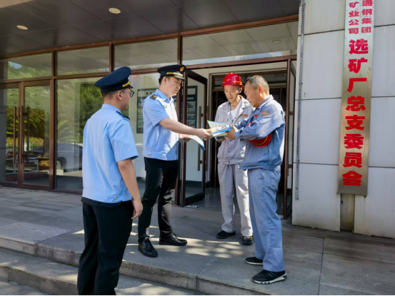 在通钢集团板石矿业公司选矿厂活动现场,环境执法人员向企业工作人员发放全国生态日宣传资料,讲解全国生态日设立的背景和重要意义以及生态环境保护相关法律法规,并与企业有关人员进行座谈交流,详细了解企业生产经营状况和污染防治设施运行管理情况,认真倾听企业诉求,并对企业在日常经营管理过程中遇到的生态环境问题进行了答疑解惑,引导企业推行清洁生产,提升环境治理水平,实现环境效益与经济效益双提升。