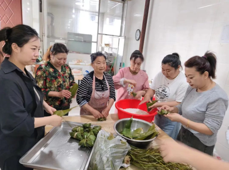 包粽子活动开始,大家都争先恐后地拿粽叶、做漏斗、填糯米、加馅料、包裹、捆绑井然有序进行着。一片片清香的粽叶,一粒粒晶莹的糯米,在一双双巧手下转眼就变成了一个个诱人的粽子。活动现场弥漫着粽叶香,气氛融融,欢声笑语不断。端午节吃粽子,是中国人民的传统习俗,这一活动也增添了节日氛围,将端午文化深入人心。