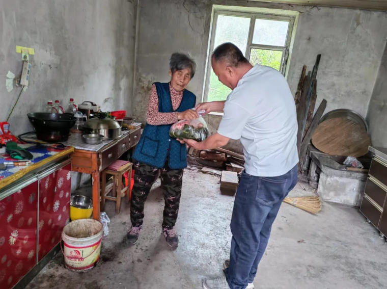 接下来,大家把包好的粽子以及面粉、鸡蛋等食物送到贫困户家里并送上节日的祝福,村民们脸上洋溢着喜悦的笑容,他们纷纷表示感谢。志愿者们亲切地与村民们交谈,询问他们的身体和生活情况及困难,真切的关怀与问候,让村民们感受到了浓浓的节日情。