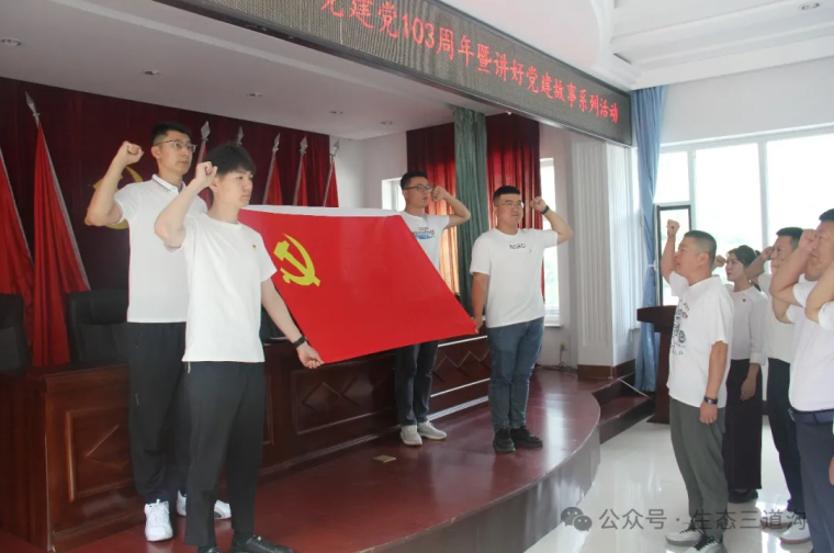 为庆祝中国共产党成立103周年,充分发挥党组织的战斗堡垒和先锋模范作用,进一步加强基层党组织建设,提升基层党组织凝聚力,7月1日,三道沟镇党委开展“党建红”引领“夕阳红”主题党日系列活动,镇机关全体党员参加活动。