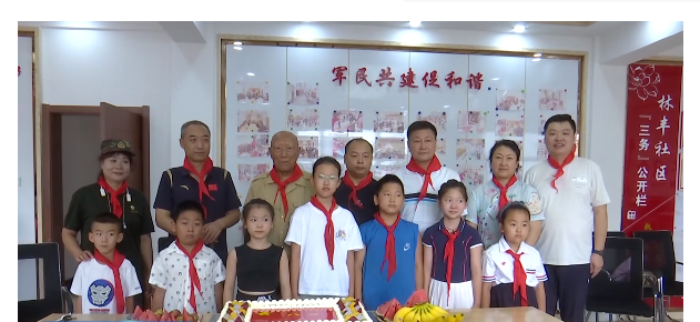 活动中,辖区内的孩子庄重的为退役军人佩戴红领巾,表达对他们的感激和敬意,感谢他们为国家和人民所做的贡献。孩子们纷纷表示,要像老兵学习不畏艰险、勇往直前的精神。随后,在欢乐的氛围中,大家一同切蛋糕,共享美食。孩子们还为退役军人朗诵诗歌、表演舞蹈,展现了孩子的童真与敬意。最后,大家分工合作,一起和面、擀皮、包饺子,孩子们、退役军人和辖区居民共同参与,相互分享包饺子的技巧,场面十分温馨。
