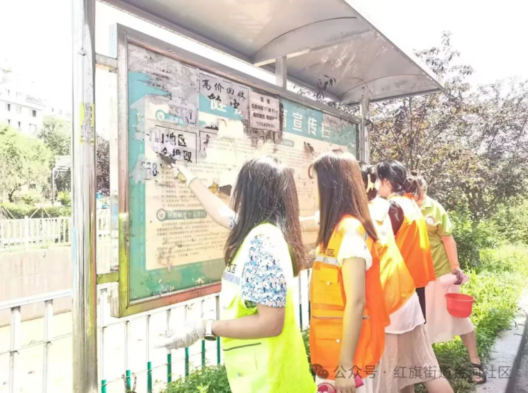 “红动力”党建+多方参与|清理小广告擦亮文明底色——金河社区组织开展清理小广告志愿服务活动