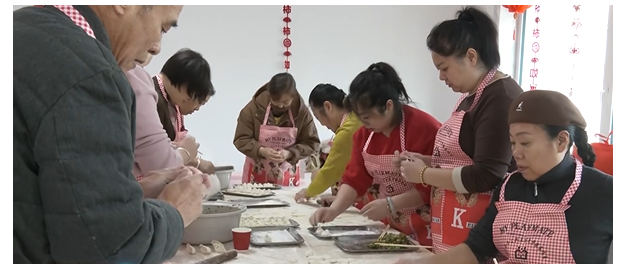 活动现场气氛热烈,居民们轮番表演了舞蹈、歌曲等节目,赢得了阵阵掌声和欢呼声。表演结束后,居民们包起了象征着团圆的饺子,大家分工明确,有的揉面,有的拌馅,有的擀皮,大家围坐在一起,一边包饺子,一边分享过去一年里的点滴故事。